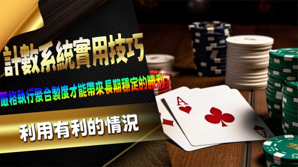 當使用計數系統時,莊家發出的每張牌都有一個特定的點數,玩家必須專注於追蹤這些點數。在實戰中,你選擇適合自己的計數方式,例如高低計數,透過不斷的計算來預測剩餘牌堆的組成並調整你的賭注。嚴格執行聚合製度才能帶來長期穩定的勝利。